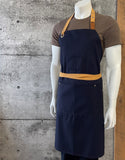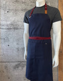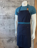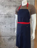 Le tablier bavette bleu marin à la parfaite touche de couleur