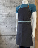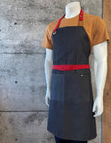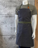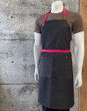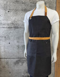 Tablier 34”L x 34”l. Trois poches. Ganse au cou ajustable.