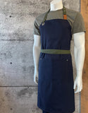 Le tablier bavette bleu marin à la parfaite touche de couleur