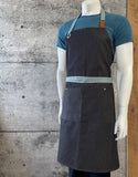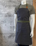 Tablier 34”L x 34”l. Trois poches. Ganse au cou ajustable.