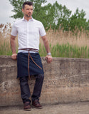 La richesse de l’oxford, le côté brut du twill et du faux suède pour un parfait tablier vintage