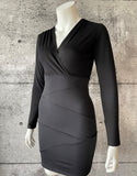 Cette magnifique robe comporte une encolure plongeante de type cache-coeur, des manches longues et une jupe seyante aux découpes asymétriques.- 88% Nylon- 12% Spandex
