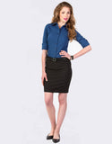 Jupe ajustée garnie d’une fermeture éclair à l’arrière et d’une petite fente à l’ourlet.