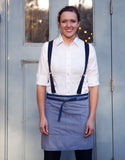 Tablier 17 1/2”L x 30”I. Cinq poches. Deux compartiments prévu pour crayons et/ou limonadier