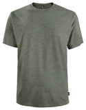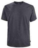Couleurs chinées : Jersey fin de 50% coton biologique et 50% polyester recyclé post-consommation peigné et filé à l'anneau..
