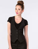 Veste sans manche extensible à quatre boutons et deux petites poches à l’avant.