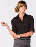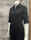 Chemise ajustée à manches trois-quarts. Elle s’agence aussi bien à un jean qu’à un pantalon habillé.